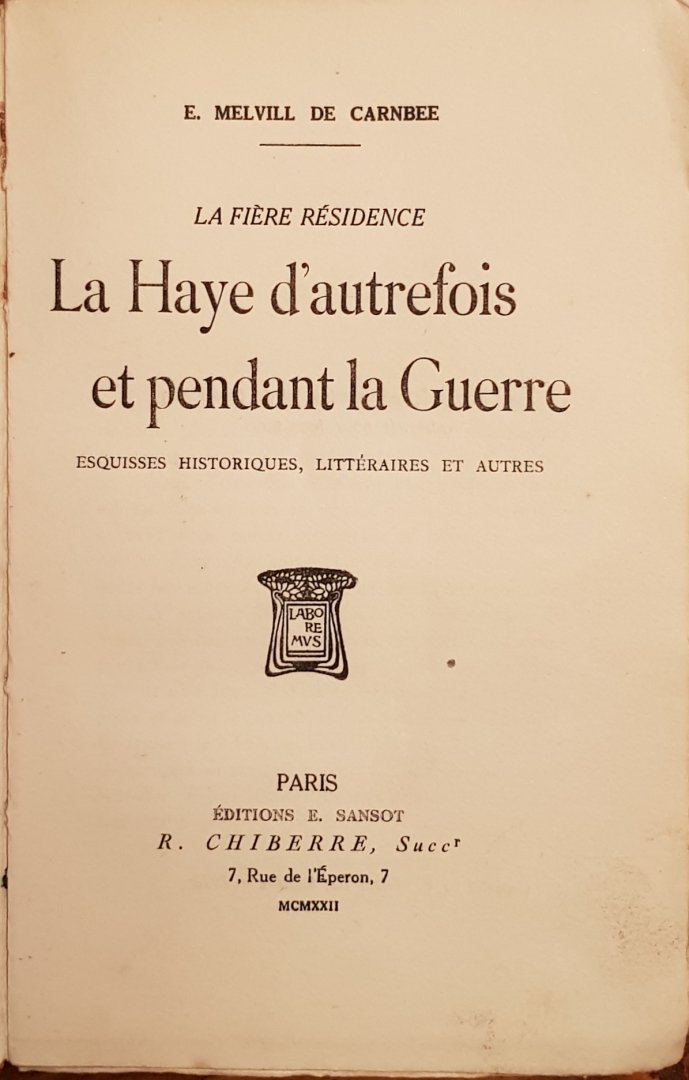MELVILL DE CARNBEE, E. - La Haye d'autrefois et pendant la Guer