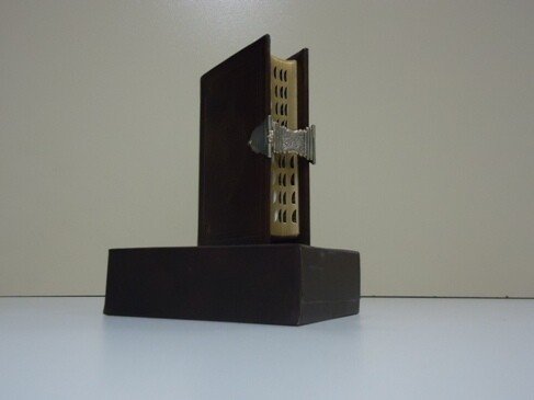 Zakbijbel in bijzondere uitvoering klein D34az Met Psalmen en Formulieren. Formaat: 8,5 x 12,5 cm. Met zilveren gravé slot, antiekbruin leer en duimgrepen. GBS-uitgave. Deze zakbijbel wordt geleverd met beschermhoes. |