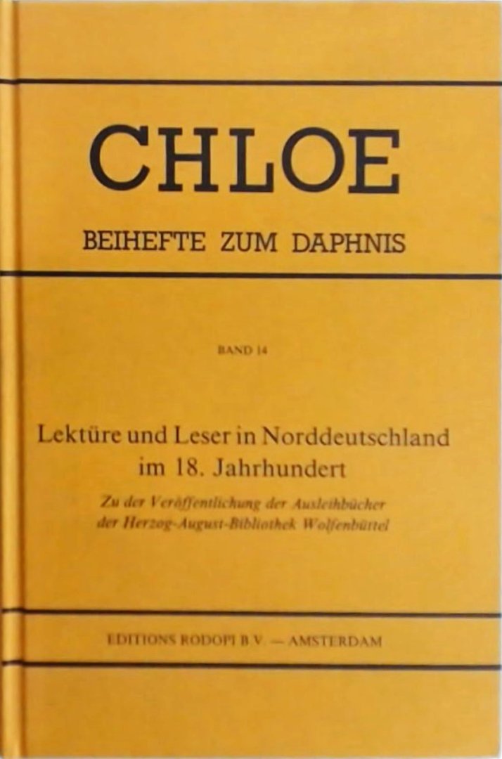| Titel: | Chloe Beihefte zum Daphins : Lekture und Leser in Norddeutschland im 18. Jahrhundert |