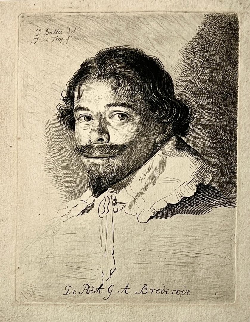 | Bijzonderheden: | Self-portrait of painter David Bailly (1584-1657), etched by Johannes de Frey. The original drawing is at the Rijksmuseum in Amsterdam [inv. PR-T-1913-11].Bust portrait to the left, facing the viewer. With curly hair, a wide moustache, flat white ... |
