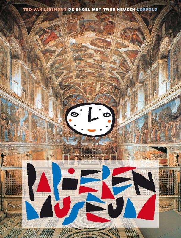 Wat hebben Dick Bruna met Matisse, Thé Tjong-Khing met Manet en Peter Vos met Rembrandt? Dat zie je in het Papieren Museum!\nWat er vertoond wordt? Kunst! Kunst van oude meesters en kunst van nu. Van befaamde schilders die allang dood zijn tot beroemde tekenaars die springlevend zijn.\nKom binnen! Zie alles, zie niks. Kom terug en zie meer, want elke keer zie je iets dat je eerder niet zag.\nSoms komen tekenaars van nu op ideeën door kunst van vroeger. Papieren Museumdirecteur Ted van Lieshout heeft Nederlandse en Vlaamse tekenaars gevraagd naar hun band met beeldende kunst. Hij huppelt met ze mee door de tentoonstelling De engel met twee neuzen.