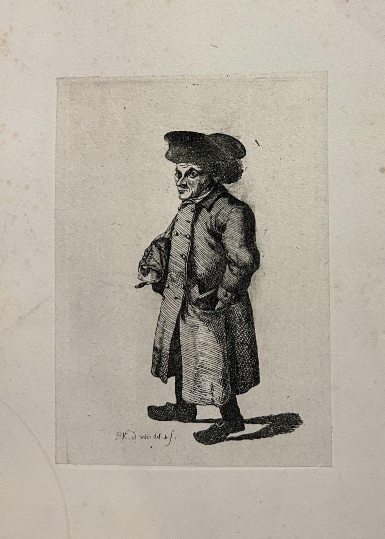 | Meer info: | Etching on paper, 165 x 115 mm. Pasted on a bigger sheet of paper with foxing and some smudges, total: 305 x 240 mm. Immerzeel p. 111; Kramm p. 873. Original print in Rijksmuseum RP-P-1905-2919. |