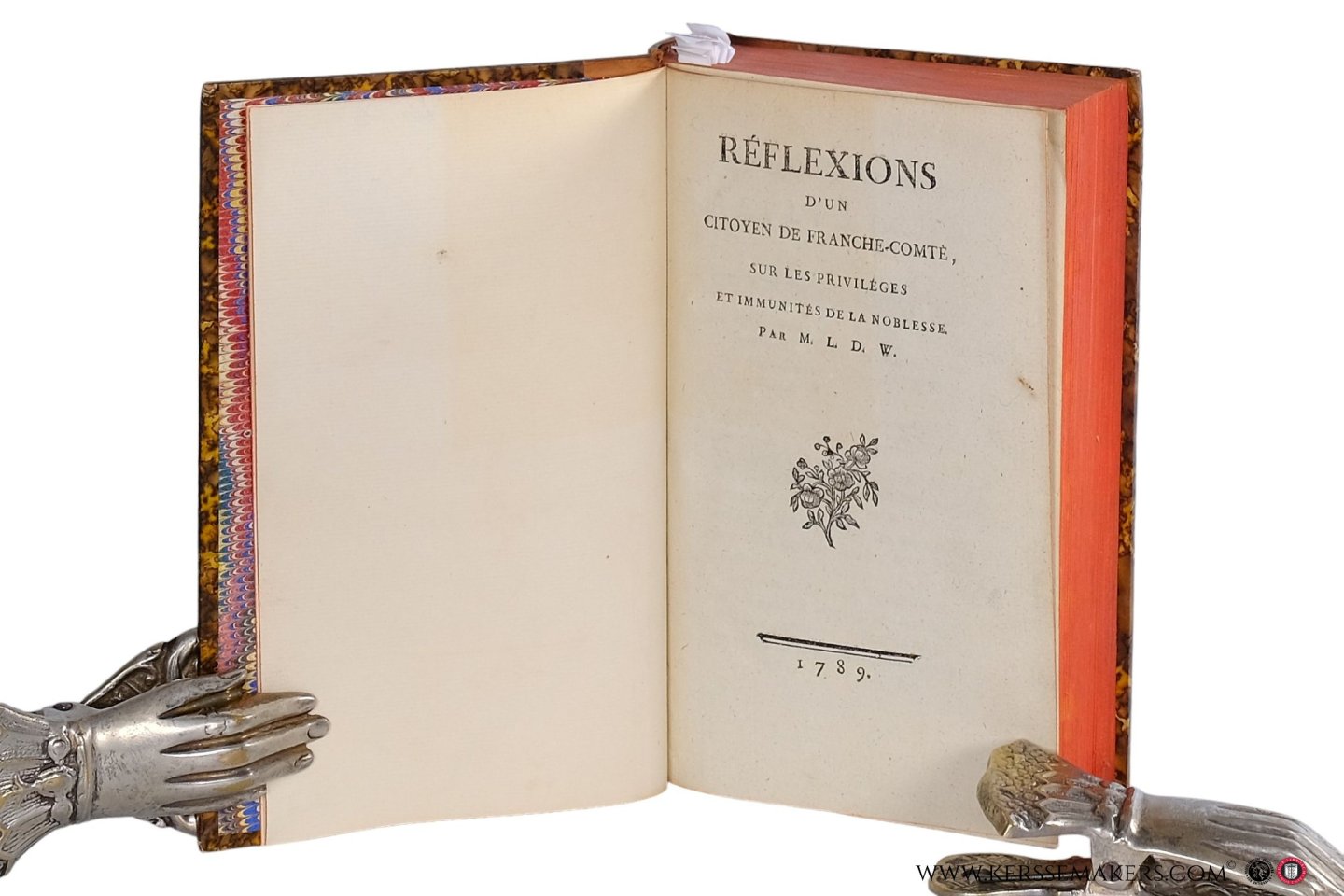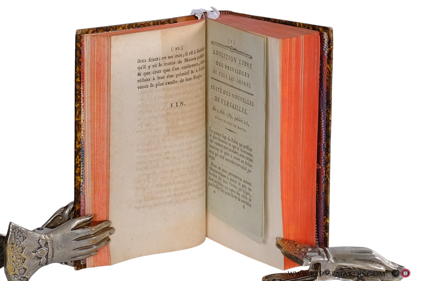covers with marbled paper. Edges painted red, marbled endpapers. (Corners sl. bumped, with minimal traces. - Attractive copy with 23 pamphlets (almost all in fine condition, only a few leaves waterstained or browned and very few brown spots in places. Only no 23 in bad condition). - Nice and interesting collection about the French nobility in relation to the Revolutionary ideas. - Some of the brochures are extremely rare.