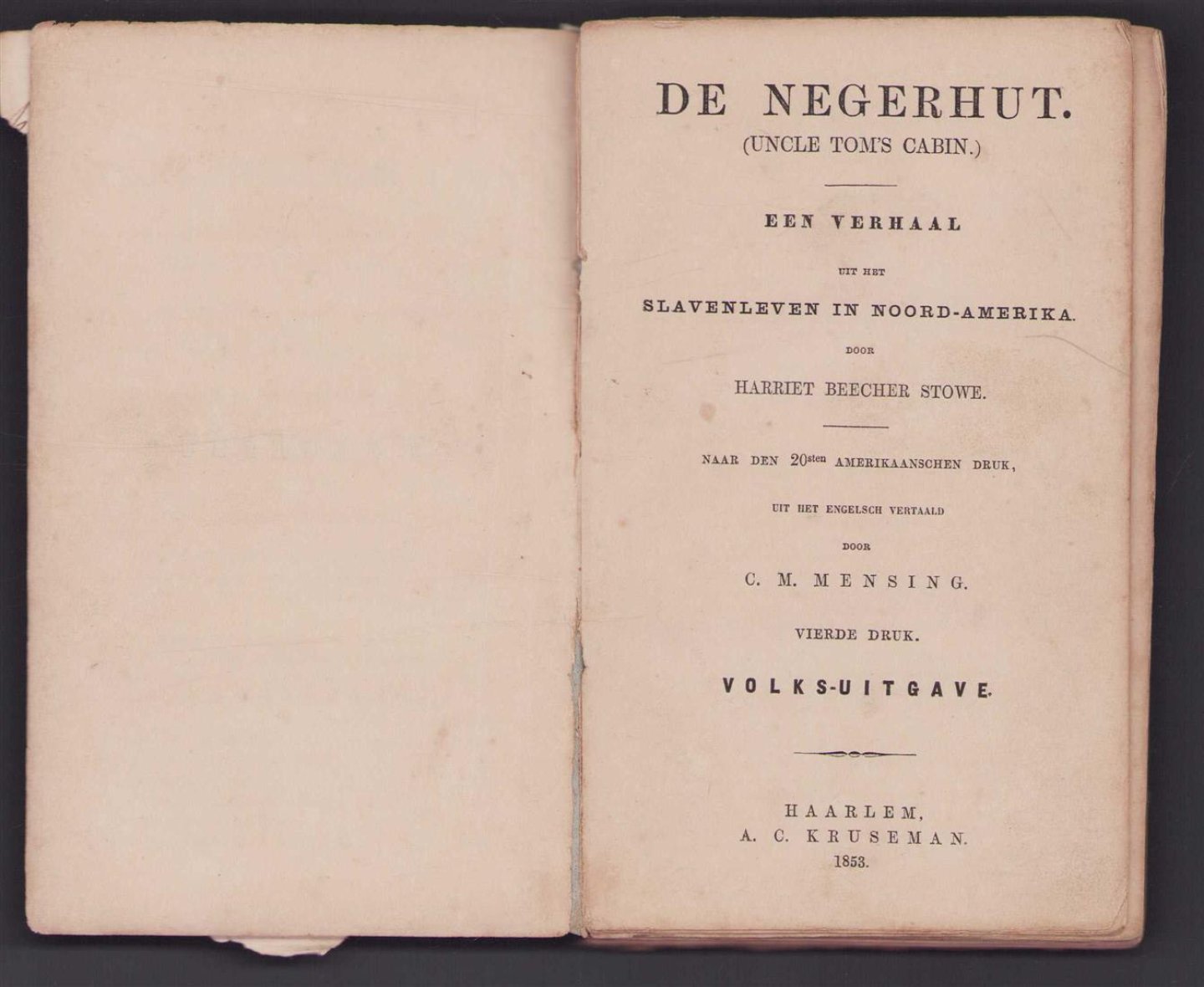 | Titel: | De negerhut (Uncle Tom's Cabin) : Een verhaas uit het slaven leven in Noord Amerika-- Maar den 20sten Amerikaanischen druk |