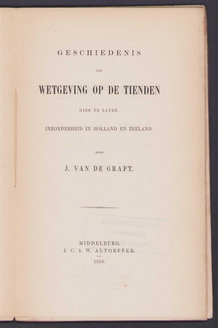 Graft, Jacob van de - Geschiedenis der wetgeving op de Tienden