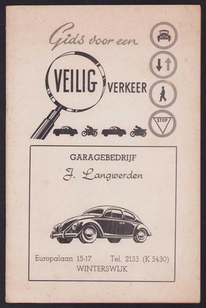 | Bijzonderheden: | n.d., Zeer goed, Omslag + 20p. 15,5x24 Cm., Tekst over gedrag en regels. Verder vol met reclame van lokale bedrijven die raakvlakken hebben met het verkeer. Deze is regio AALTEN - WINTERSWIJK. ZELDZAAM |