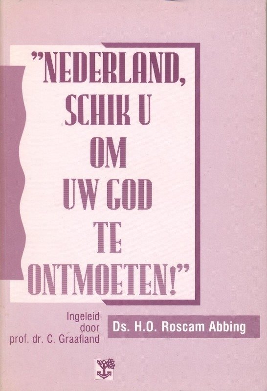Nederland, schik u om uw God te ontmoeten van ds. H.O. Roscam Abbing gaat over de breuk tussen Christus en kerk en staat in Nederland en haar genezing.