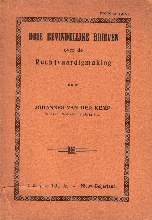 Drie bevindelijke brieven over de rechtvaardigmaking van Johannes van der Kemp, een van de bekendste predikanten van de zogenaamde Nadere Reformatie.