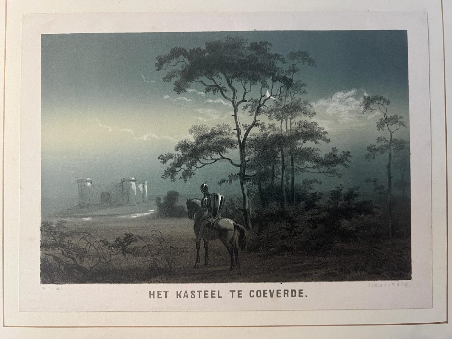 | Bijzonderheden: | Coloured lithography, 12,5 x 17 cm, with a knight on a horse. Lithographed by P.W.M. Trap and W.J. Hofdijk. From "Merkwaardige Kasteelen in Nederland" by J. van Lennep. |