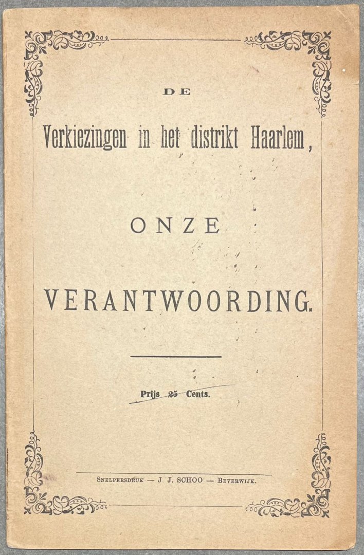 | Titel: | Haarlem, 1878, Elections | De Verkiezingen in het distrikt Haarlem, onze verantwoording. Beverwijk, J. J. Schoo, 1878, 30 pp. |