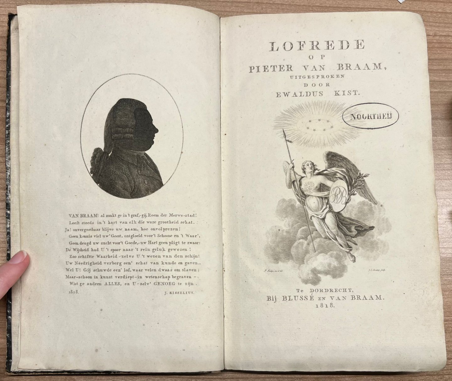 | Titel: | Epitaph, 1818, Dordrecht | Lofrede op Pieter van Braam, uitgesproken door Ewaldus Kist, Te Dordrecht, Bij Blussé en Van Braam, 1818, 135 pp. Handwritten text "Prezent van de Uitgever"= Blussé. |