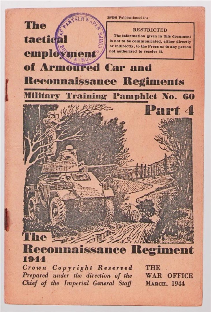| Titel: | The tactical employment of armoured car and reconnaissance regiments : military training pamphlet no. 60: part 4: the reconnaissance regiment 1944. |