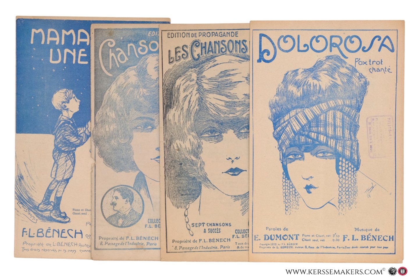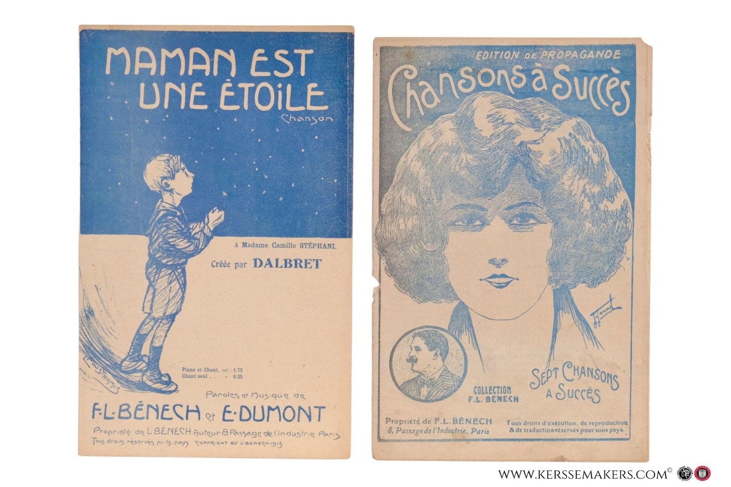 | Titel: | 4 partititions musicales.( chansons) Pt. format: 1) F. L. Bénech (paroles), E. Dumont (musique). Maman est une étoile. Chanson créée par Dalbret. À Madame Camille Stéphani. 1913. - 2) Sept chansons à succès. Collection F. L. Bénech. Editi... |