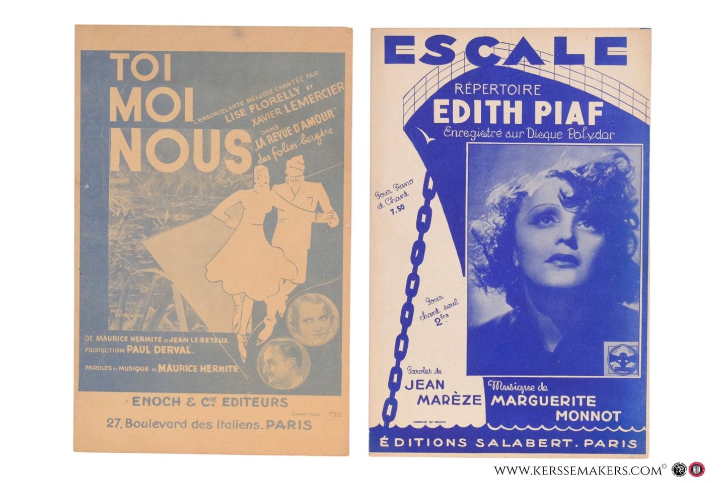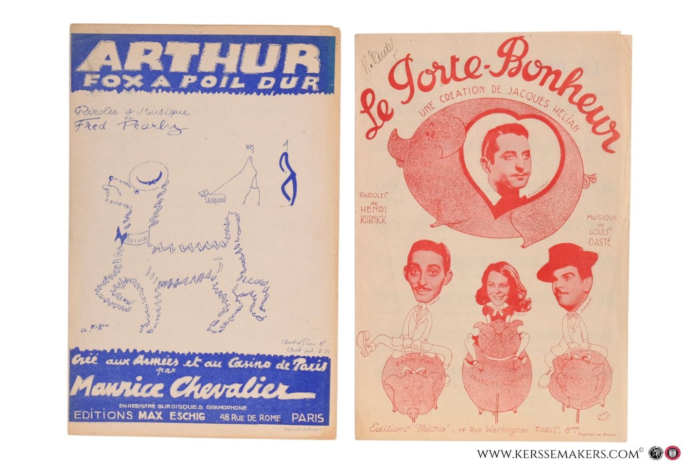 1) Hermite. Paris, Enoch & Cie, 1933. Frontcover designed, with photo by Pierre Barry. - 2) Marèze. Paris, Salabert, 1938. - 3) Pearly. Paris, Éditions Max Eschig, 1940. Frontcover designed by Ch. Kiffer. - 4) Kubnick. Paris, 'Editions Micro, 1945. Frontcover designed by Jean Bellus. - 5) Auric. Paris Société d'Éditions Musicales Internationales, 1953. Frontcover designed by R. Elmy. (Some folts).