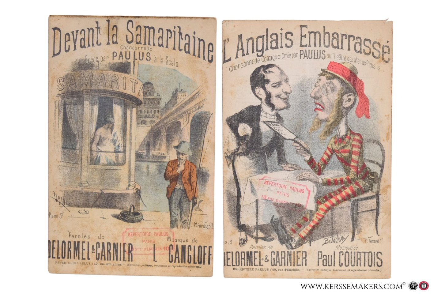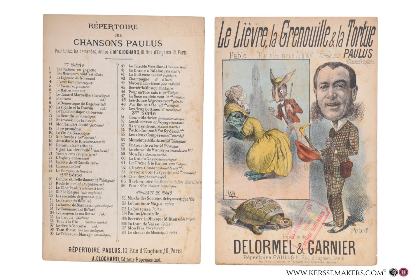Delormel & Garnier - 4 partitions musicales, Pt. format: 1) Devant la Samaritaine. Chansonette, créée par Paulus à la Scala. Musique de L. Gangloff. 1886. - 2) Le lièvre, la grenouille & la tortue. Fable (Racontée par un Anglais), créée par Paulus, le chanteur ... Delormel & Garnier - 4 partitions musicales, Pt. format: 1) Devant la Samaritaine. Chansonette, créée par Paulus à la Scala. Musique de L. Gangloff. 1886. - 2) Le lièvre, la grenouille & la tortue. Fable (Racontée par un Anglais), créée par Paulus, le chanteur ... Delormel & Garnier - 4 partitions musicales, Pt. format: 1) Devant la Samaritaine. Chansonette, créée par Paulus à la Scala. Musique de L. Gangloff. 1886. - 2) Le lièvre, la grenouille & la tortue. Fable (Racontée par un Anglais), créée par Paulus, le chanteur ... Delormel & Garnier - 4 partitions musicales, Pt. format: 1) Devant la Samaritaine. Chansonette, créée par Paulus à la Scala. Musique de L. Gangloff. 1886. - 2) Le lièvre, la grenouille & la tortue. Fable (Racontée par un Anglais), créée par Paulus, le chanteur ... Delormel & Garnier - 4 partitions musicales, Pt. format: 1) Devant la Samaritaine. Chansonette, créée par Paulus à la Scala. Musique de L. Gangloff. 1886. - 2) Le lièvre, la grenouille & la tortue. Fable (Racontée par un Anglais), créée par Paulus, le chanteur ...