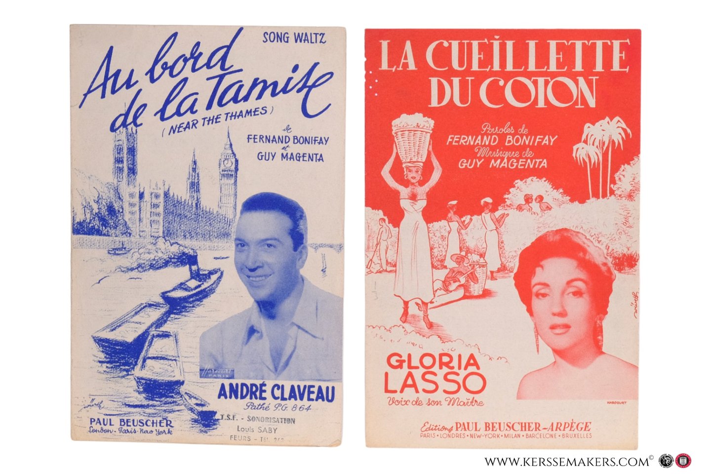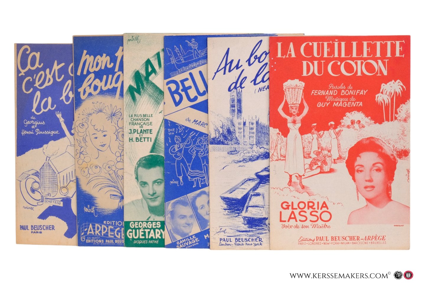Titel: 6 partitions musicales, Pt. format: 1) Georgius & Henri Poussigue. Ça c'est la bagnole. 1937. - 2) Jaques Plante & Louis Ferrari. Mon petit bouquet de fleurs. Créée et enregistrée par Georges Guétary. 1949. - 3) J. Plante & H. Betti. Maitre P...