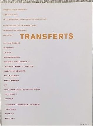 This publication appears on the occasion of the exhibition TRANSFERTS, which will take place at the Palais des Beaux-Arts in Brussels from 21 June through 14 September 2003. TRANSFERTS will bring together works of African artists from different generations and will be part of a series of events for Africalia to take place in Belgium from March through October 2003.nnCreated in 2001, Africalia is a development project whose objective is to take into account the role of culture within the economical, technological and political development in Africa. Its goal is to develop collaborations by promoting and supporting cultural African creations. nnThe term TRANSFERTS is often used in connection with migratory or financial movements. Thus the title of this exhibition refers to the incessant fluxes of people, goods, information, and ideas that characterise our world and cause it to be in a permanent state of mutation. Two underlying themes structure TRANSFERTS, without systematically defining its parcours. The first theme, ''the death of the other'', is a voluntarily provocative statement which alludes to the current discourse on globalisation. The second theme is concerned with the ''acceleration of history''. Wars, disasters, terrorist attacks, receive much attention in the media and create an incessant state of emergency, a continuous feeling of anguish. To what extent do these also influence the course of history?nMany works are being created especially for this exhibition, which will stretch over 1600m2. Its dynamic parcours is an open invitation for visitors to reflect and experiment. Hicham Benohoud, Bili Bidjocka, Godfried Donkor, Alfredo Jaar, William Kentridge, Abdoulaye Konat?, Ingrid Mwangi, Otobong Nkanga, Aim? Ntakiyica, Keith Piper, Tracey Rose, Pascale Marthine Tayou, Fatimah Tuggar, Minnette Vari and Sue Williamson are just some of the artists invited to participate. The diversity of their work confirms that no theory could possibly circumscribe the contemporary artistic practices on the African continent under a single label. nnThe publication will include text contributions by Toma Muteba Luntumbue, Johannes Fabian, Yousouf Tati Ciss?, Tobias Wendl and others, as well as contributions by all participating artists.