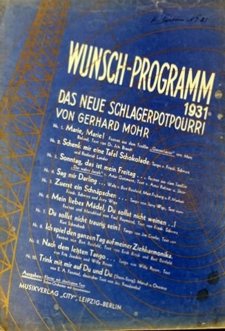 ![Guttmann, Artur: - [Der wahre Jacob] Sonntag dass ist mein Freitag... Foxtrot aus dem Tonfilm (Wunsch-Programm 1931; des neueste SChlagerpotpourri von Gerhard Mohr) Guttmann, Artur: - [Der wahre Jacob] Sonntag dass ist mein Freitag... Foxtrot aus dem Tonfilm (Wunsch-Programm 1931; des neueste SChlagerpotpourri von Gerhard Mohr)](https://images.boekwinkeltjes.nl/medium/VeYmftSKcJ1OOWU9EGo0.jpg)