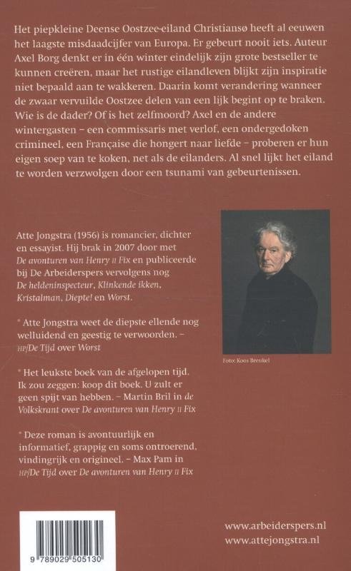 Het piepkleine Deense Oostzee-eiland Christiansø heeft al eeuwen het laagste misdaadcijfer van Europa. Er gebeurt nooit iets. Auteur Axel Borg denkt er in één winter eindelijk zijn grote bestseller te kunnen creëren, maar het rustige eilandleven blijkt zijn inspiratie niet bepaald aan te wakkeren. Daarin komt verandering wanneer de zwaar vervuilde Oostzee delen van een lijk begint op te braken. Wie is de dader? Of is het zelfmoord? Axel en de andere wintergasten - een commissaris met verlof, een ondergedoken crimineel, een Française die hongert naar liefde - proberen er hun eigen soep van te koken, net als de eilanders. Al snel lijkt het eiland te worden verzwolgen door een tsunami van gebeurtenissen.