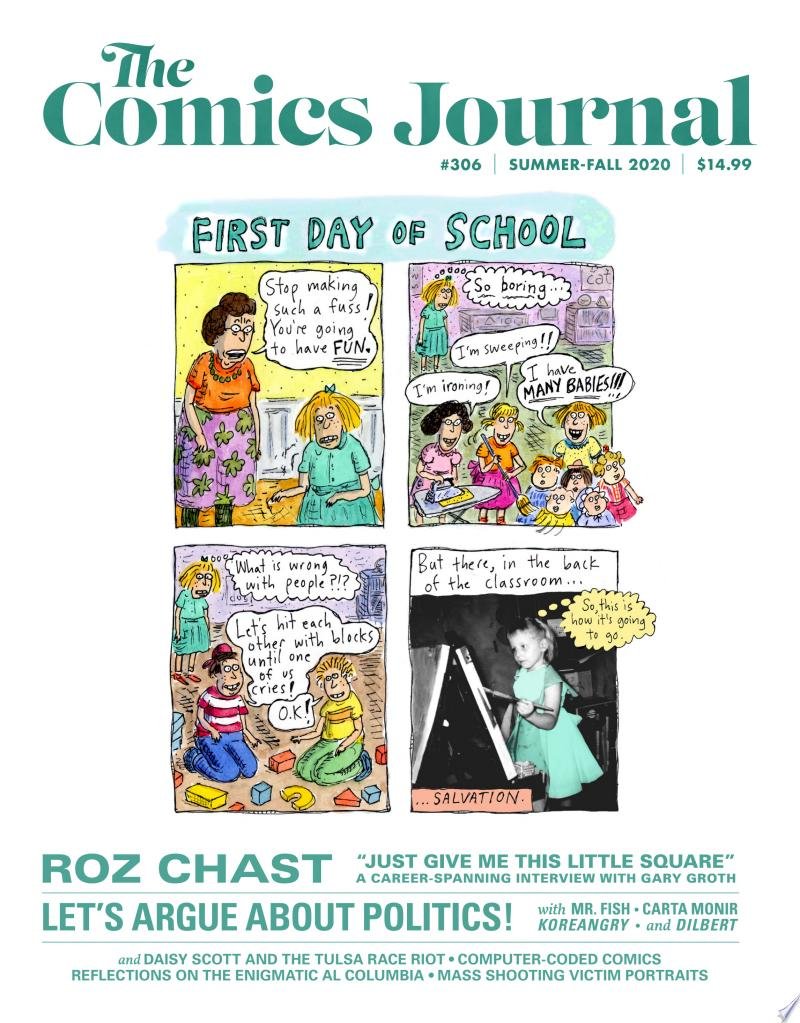 In this issue, Gary Groth interviews Roz Chast, the New Yorker humor cartoonist turned graphic memoirist (Can’t We Talk About Something More Pleasant?). TCJ #306 focuses on the intersections between comics and politics. It includes op-eds on the importance (and lack thereof) of modern political cartooning. Also featured is a meditation on the creator of the Dilbert newspaper comic strip, Scott Adams; a piece about Daisy Scott, the first African American woman political cartoonist; a gallery of underground cartoonist John Pound’s code-generated comics; portraits of mass shooting victims; a selection of Spider-Gwen artist Chris Vision’s sketchbook pages; and other essays and galleries.
