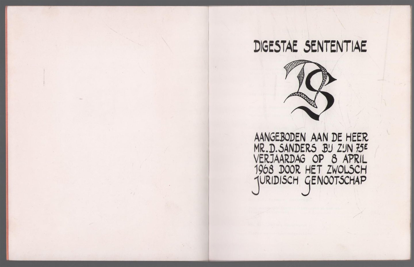 | Titel: | Digestae sententiae. Aangeboden aan de Heer Mr. D. Sanders bij zijn 75. verjaardag op 8 april 1968 |