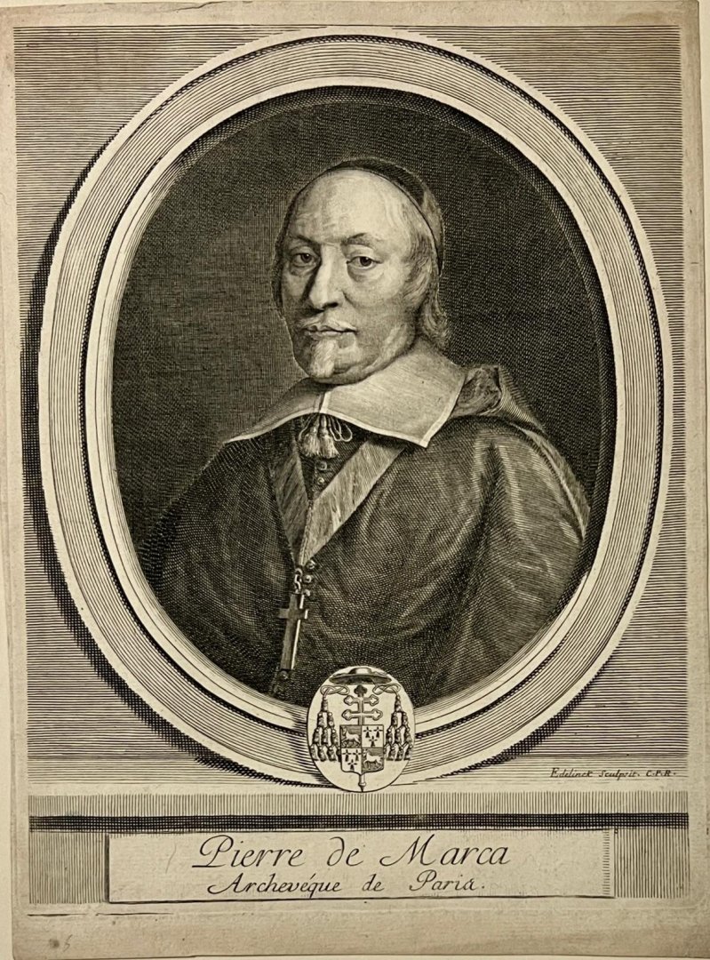 | Titel: | Antique print, engraving | Portrait of Pierre de Marca by Edelinck, published 1695, 1 p. |