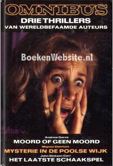 | Meer info: | Inhoud: Moord of geen moord, Andrew Garve - Mysterie in de Poolse wijk, Mignon Eberhart - Het laatste Schaakspel, John Dickson Carr.. |