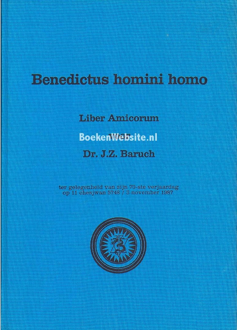 | Meer info: | Liber Amicorum voor Dr. J.Z. Baruch ter gelegenheid van zijn 70-ste verjaardag op 11 chesjwan 5748 / 3 november 1987 |