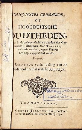 ![TACITUS, Publius Cornelius - [Germania]. Antiquitates Germanicae of Hoogduitsche Oudtheden; waar in de gelegentheid en zeeden der Germaanen, beschreven door Tacitus, naaukeurig verklaart, en met printverbeeldingen opgeheldert worden: Benevens H. Grotius verhandeling van d...](https://images.boekwinkeltjes.nl/medium/oPnKvUCtmezWOey6RIDW.jpg)