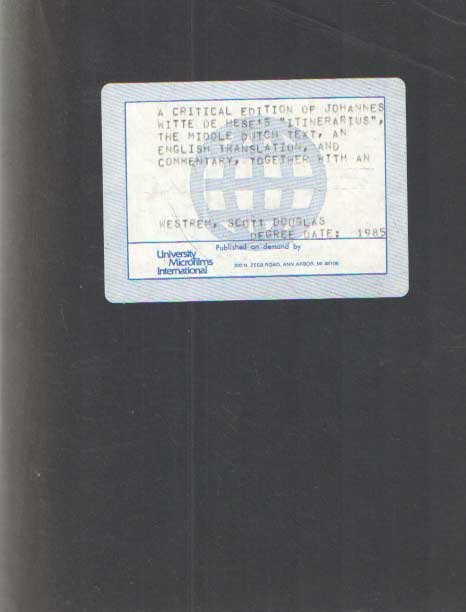 | Titel: | A critical edition of Johannes Witte de Hese's Itinerarius : the Middle Dutch text, an English translation, and commentary, together with an introduction to European accounts of travel to the East (1240-1400) |