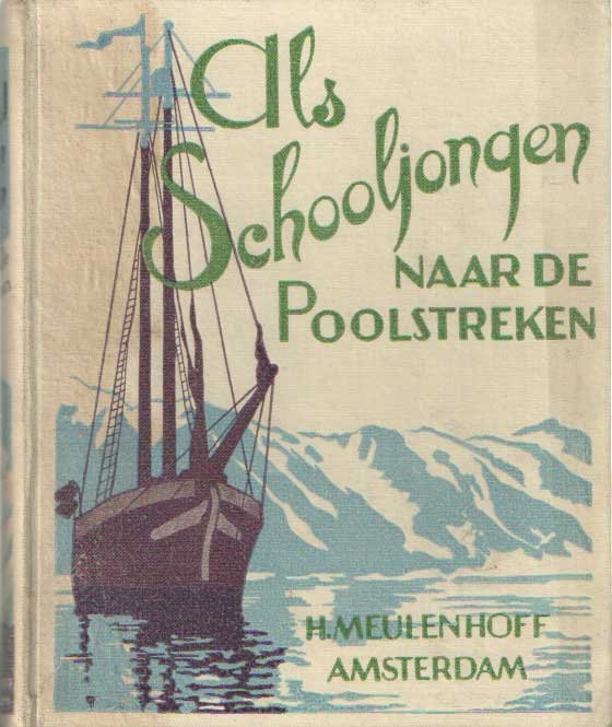 | Titel: | Als schooljongen naar de poolstreken. Eerste druk. Met een voorwoord van Bob Bartlett. Geïllustreerd naar foto's. Tekstversiering naar teekeningen van den Eskimo Kakutia uit Karnah aan de Whale Sound |