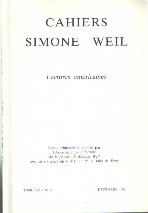 | Titel: | Cahiers Simone Weil. Lectures américaines. Tome XV - no. 4. |
