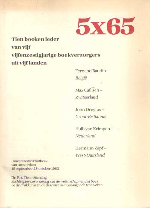| Titel: | 5 x 65. Tien boeken ieder van vijf vijfenzestigjarige boekverzorgers uit vijf landen |