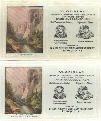 | Bijzonderheden: | Ills.: kleur. Reclame-uiting uit eind jaren veertig begin jaren vijftig. Cond.: goed / good. Gebruikt steeds ter vervanging van dure boter onze succesmerken Het Zeeuwsche meisje & Rijswijk's Glorie. |