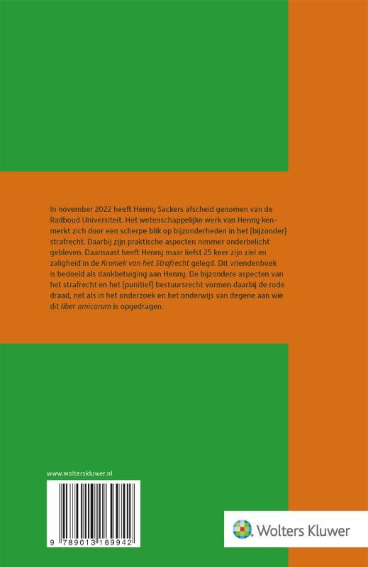 In november 2022 nam hoogleraar bestuurlijk sanctierecht Henny Sackers afscheid van de Radboud Universiteit. Deze afscheidsbundel is een eerbetoon aan zijn bijdrage aan het straf- en bestuursrecht. De focus op het bijzonder strafrecht maakt deze titel een must read voor wetenschappers, studenten en praktijkjuristen. Een uitzonderlijk scherpe blik op bijzonderheden binnen het (bijzonder) strafrecht én de praktische aspecten daarvan: die kenmerkt het werk van hoogleraar bestuurlijk sanctierecht Henny Sackers. In november 2022 nam hij afscheid van de Radboud Universiteit. Maar niet voordat collegae in de pen klommen om via uitdagende bijdragen een dankbetuiging, met als titel Bijzonderheden in het strafrecht, aan zijn werk te schrijven. In deze bundel vormen de bijzondere aspecten van het strafrecht en het (punitief) bestuursrecht de rode draad, net als in het onderzoek en onderwijs van Henny Sackers. Bijzondere en onderbelichte thema’s in het strafrecht komen in de diverse bijdragen aan bod, waarbij ook een koppeling wordt gemaakt met het (punitieve) bestuursrecht. De publicatie sluit aan bij actuele ontwikkelingen in het straf- en bestuursrecht. Zo gaan verschillende auteurs in op de verhouding tussen en samenloop van deze twee rechtsgebieden, en op de positie van de burgemeester. Daarnaast bevat de publicatie bijdragen over (toekomstbestendige) wapenwetgeving. Bijzonderheden in het strafrecht onderscheidt zich van andere afscheidsbundels, die veelal bijdragen bevatten over het commune strafrecht. De focus op juíst het bijzonder strafrecht maakt deze titel een must read voor wetenschappers, studenten en praktijkjuristen die net als Henny Sackers gefascineerd zijn door het raakvlak tussen straf- en bestuursrecht. Want één ding laten alle bijdragen zien: over dat raakvlak is het laatste woord nog niet gezegd.