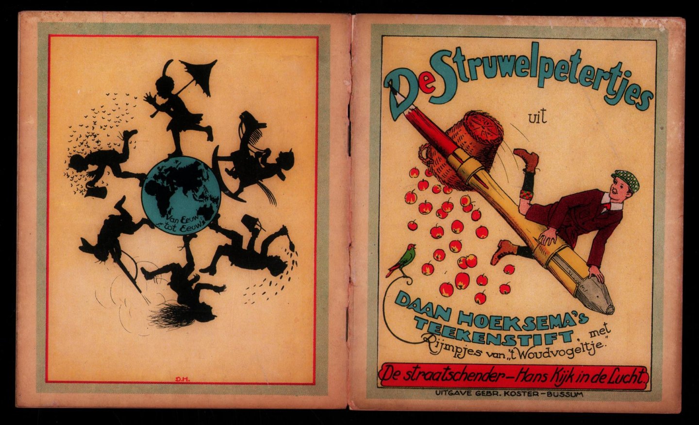 | Titel: | DE STRAATSCHENDER - HANS KIJK IN DE LUCHT -De Struwelpetertjes uit Daan Hoeksema's teekenstift ; met rijmpjes van 't Woudvogeltje. |
