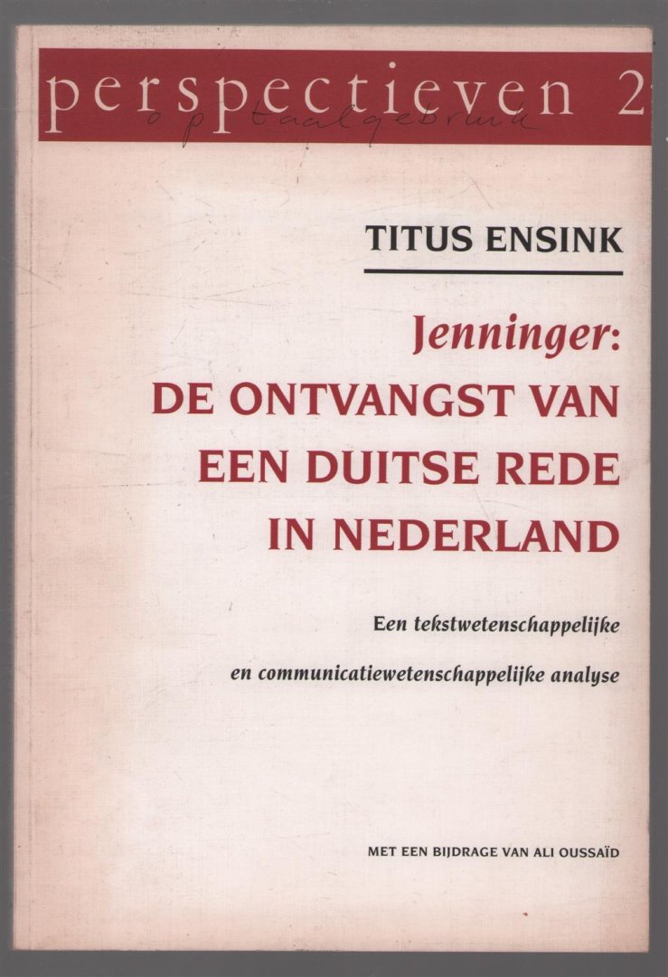 Ensink, T. (Titus) - Jenninger : de ontvangst van een Duitse re