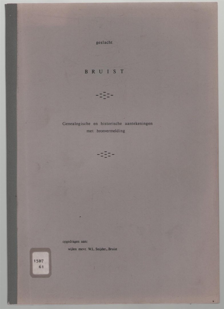 | Titel: | Geslacht Bruist : genealogische en historische aantekeningen met bronvermelding |