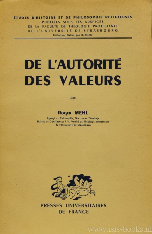 MEHL, R. - De l'autorité des valeurs. Essai d'éthique chrétien