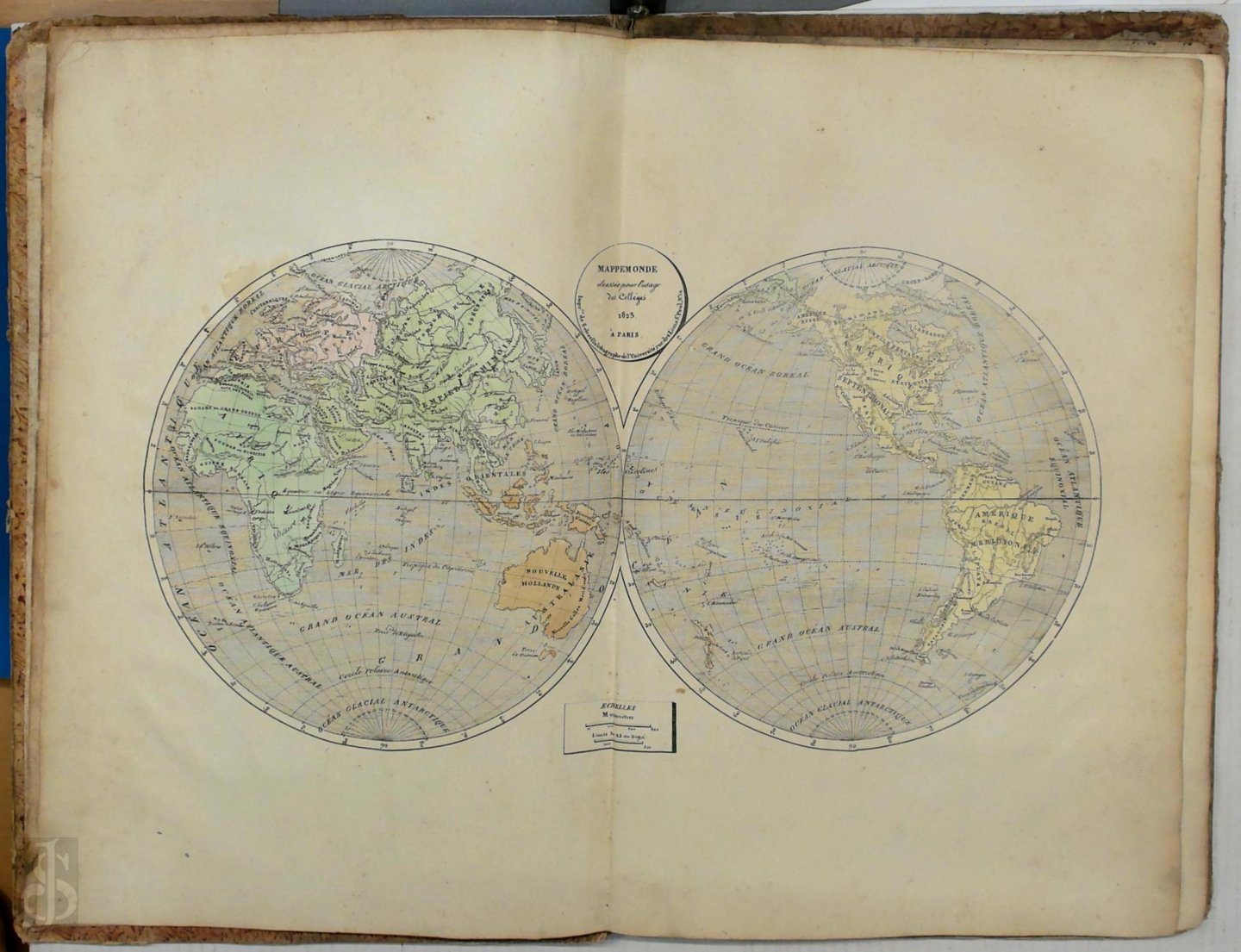 | Meer info: | French atlas for college students containing 7 (of the original 16) lithographic, hand-coloured double-page maps: world map, Europe, Asia, Africa, British Isles, Scandinavia and the European part of the former Turkish Empire. |