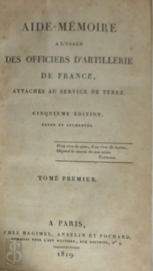 ![[Gassendi] - Aide-memoire a l'usage des officiers d'artillerie de France attachés au Service de Terre. Cinquieme Edition. Revue et augmentée. 2 Vols. [Gassendi] - Aide-memoire a l'usage des officiers d'artillerie de France attachés au Service de Terre. Cinquieme Edition. Revue et augmentée. 2 Vols.](https://images.boekwinkeltjes.nl/medium/ws5DdiDLfLI0RwMmcvRf.jpg)