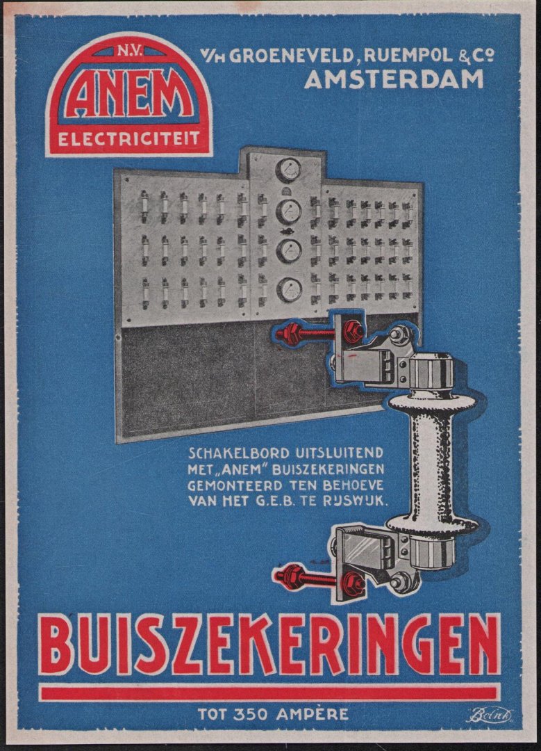 | Titel: | Buiszekeringen tot 350 Ampere - Schakelbord uitsluitend met ANEM buiszekeringen gemonteerd ten behoeve van het G.E.B. te Rijswijk |