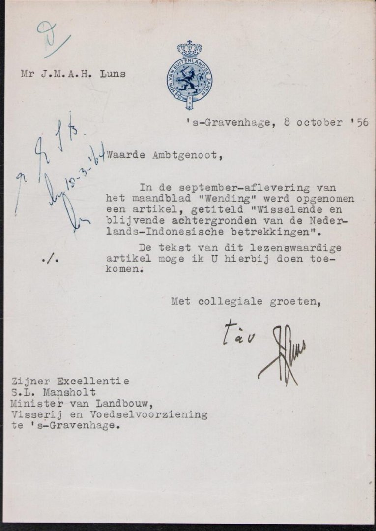 | Titel: | Briefje van Mr J.M.A.H. Luns |