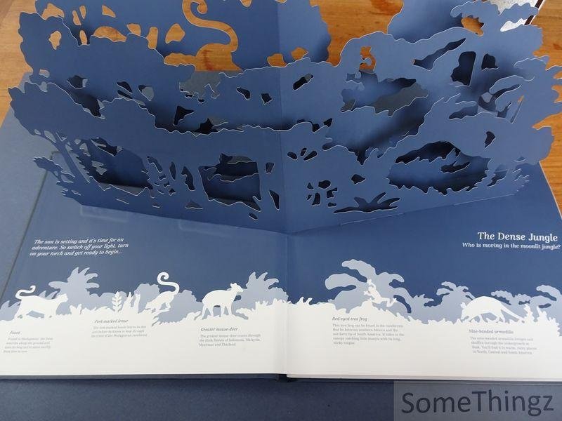 Switch off the lights, turn on your torch and come on a wonderful shadow adventure with Midnight Creatures! This book contains five beautifully crafted pop-up scenes full of creatures to find, from the fork-marked lemur in the jungle to the giant squid at the bottom of the ocean. Use your torch to help you spot the hidden creatures when they appear as shadows on your wall. A beautiful and unique pop-up adventure from talented paper artist Helen Friel.