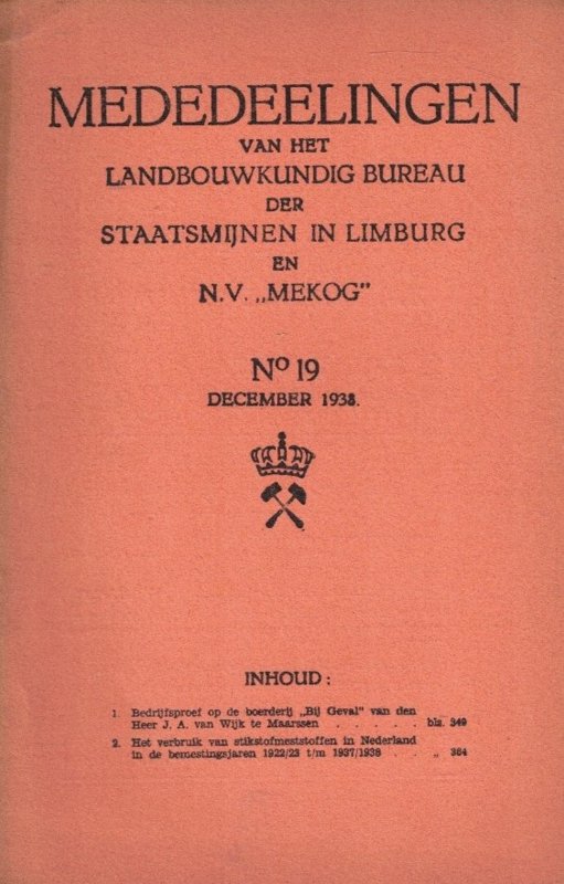 | Uitgever: | Landbouwkundig Bureau der Staatsmijnen in Limburg en N.V. 'Mekog', Heerlen, 1938 |