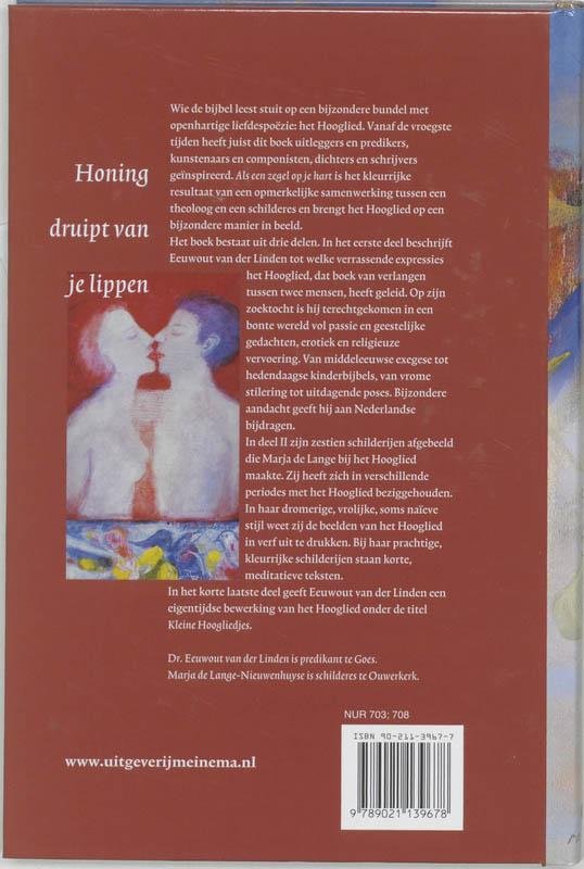 Wie de bijbel leest, stuit op een bijzondere bundel met openhartige liefdespoëzie: het Hooglied. Vanaf de vroegste tijden heeft juist dit boek uitleggers en predikers, kunstenaars en componisten, dichters en schrijvers geïnspireerd. Als een zegel op je hart is het kleurrijke resultaat van een opmerkelijke samenwerking tussen een theoloog en een schilderes en brengt het Hooglied op een bijzondere manier in beeld. Het boek bestaat uit drie delen. In het eerste deel beschrijft Eeuwout van der Linden tot welke verrassende expressies het Hooglied, dat boek van verlangen tussen twee mensen, heeft geleid. Op zijn zoektocht is hij terechtgekomen in een bonte wereld vol passie en geestelijke gedachten, erotiek en religieuze vervoering. Van middeleeuwse exegese tot hedendaagse kinderbijbels, van vrome stilering tot uitdagende poses. Bijzondere aandacht heeft hij voor Nederlandse bijdragen.