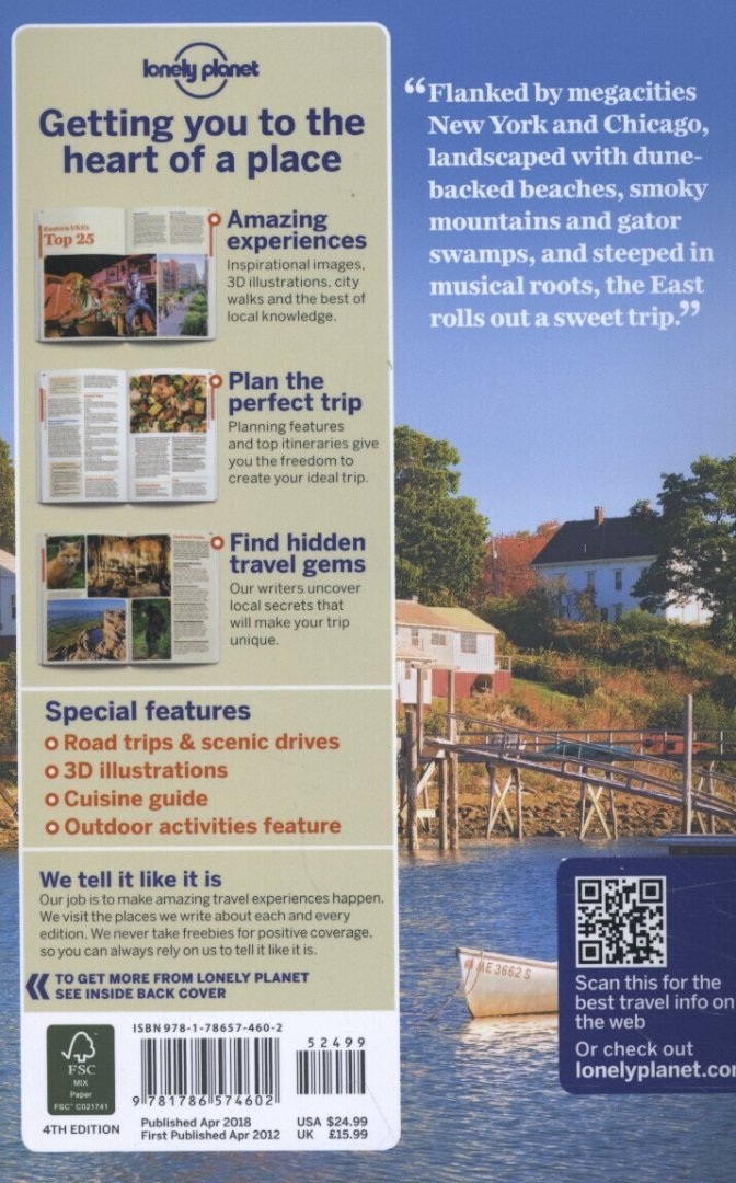 Get active underwater in Florida Keys, hit the streets of New York City, or watch leaves change color in New England; all with your trusted travel companion. Begin your journey now! Inside Lonely Planet Eastern USA Travel Guide: Color maps and images throughout Highlights and itineraries help you tailor your trip to your personal needs and interests Insider tips to save time and money and get around like a local, avoiding crowds and trouble spots Essential info at your fingertips - hours of operation, phone numbers, websites, transit tips, prices Honest reviews for all budgets - eating, sleeping, sight-seeing, going out, shopping, hidden gems that most guidebooks miss Cultural insights give you a richer, more rewarding travel experience - history, arts, architecture, music, wildlife, landscapes, lifestyle, sports, cuisine Covers New York, New Jersey, Pennsylvania, Maryland, New England, Washington DC, Florida, the Great Lakes, North & South Carolina, Tennessee, Alabama, Louisiana and more.