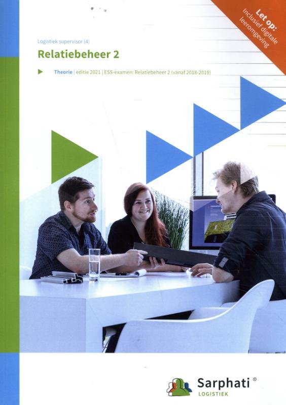 Relatiebeheer II | combipakketDit boek van Sarphati voor de opleiding Logistiek Supervisor is afgestemd op de actuele beroepspraktijk, het kwalificatiedossier en de ESS-examens.Basisdeel, kerntaak en werkprocesB1-K4-W1Inhoud combipakketBij het bestellen van dit combipakket ontvangt u:de papieren uitgave van de titelde licentie voor de digitale leeromgeving die toegang geeft tot de content van de titel en het beoordelingsmodel (deze is geldig gedurende één jaar en kan kosteloos verlengd worden.)Maak samen werk van onderwijsBoom beroepsonderwijs wil jongeren helpen zich te ontwikkelen tot echte vakmensen. Wij zijn er voor de doeners en de makers. Om samen werk te maken van onderwijs verbinden wij docenten, studenten en het bedrijfsleven met elkaar. Zo zorgen we ervoor dat jongeren het beste uit zichzelf halen. Met inspirerend lesmateriaal voor een wereld die continu verandert. Dat maakt ons trots!
