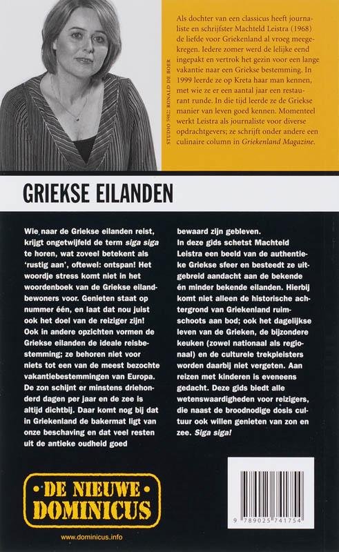 Griekse eilandenDe Griekse eilanden zijn misschien wel de meest bezochte vakantiebestemmingen. In deze Dominicus-gids gaat verdieping en achtergrondinformatie gepaard met reisplezier en genieten van de prachtige eilanden.Machteld LeistraGriekse eilanden 17,9513,5 x 22 cm, 160 blz. Geïllustreerd met kleurenfoto s en kaartenVerschijnt juli 2007isbn 978 90 257 4175 4nur 512dominicus Landengidsen