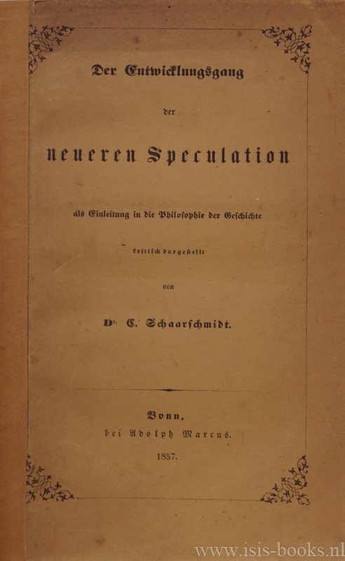 SCHAARSCHMIDT, C. - Der Entwicklungsgang der neueren Speculatio